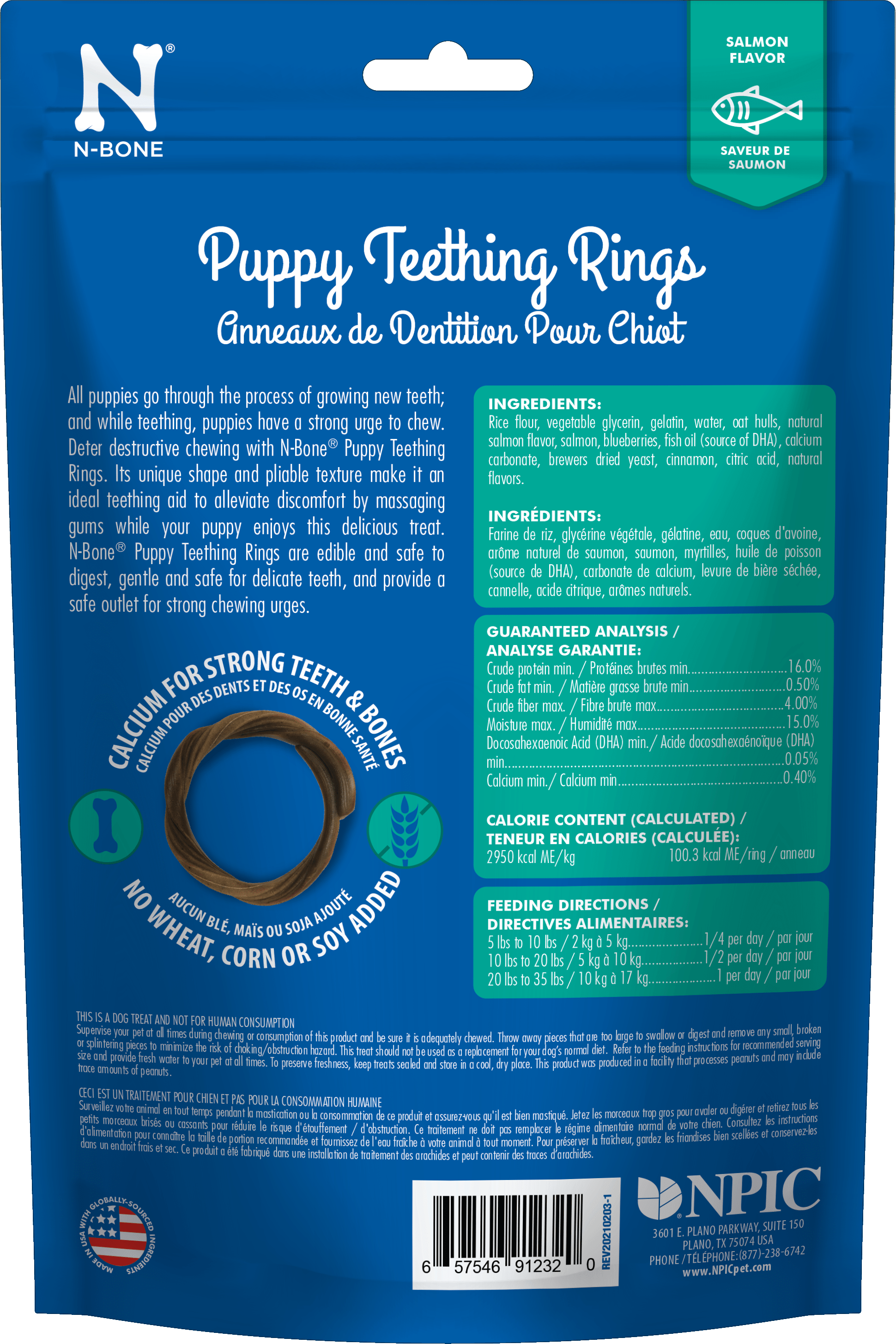 Growing new teeth is tough work and it makes for some sore gums! Sore gums and a strong urge to chew while cutting new teeth can turn your precious puppy into a whirlwind of destruction. N-Bone® Puppy Teething Rings are easy for floppy puppy paws to hold onto and provide a soothing and appropriate outlet for chewing. Formulated with DHA and calcium to support your puppy’s unique nutritional needs, our delicious salmon flavored rings are pliable and won’t damage immature teeth or upset tummies.