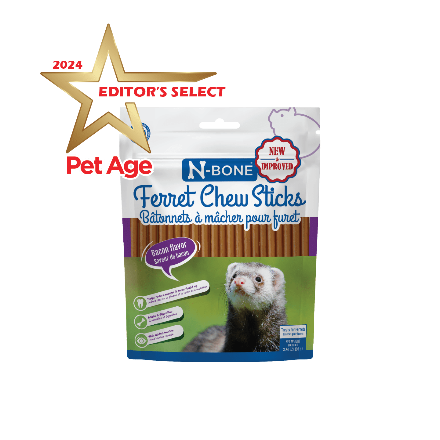 Mm-mm, bacon! While real bacon isn’t the best food to give your ferret due to the high concentrations of salt and sugar, we’ve created the next best thing: N-Bone® Bacon Ferret Chew Treats! These delicious chew treats with real pork and natural bacon flavor lets your ferret indulge in real bacon taste without the associated high levels of salt and sugar. These treats don’t just taste great, they also help to scrape away plaque and tartar while your ferret chews. With added taurine to help meet your ferret’s dietary needs, these treats are both functional and delicious.